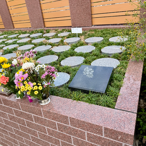 ご遺骨を納める筒状の納骨棺の上へプレートを設置いたしますので樹木葬より個別感があります。